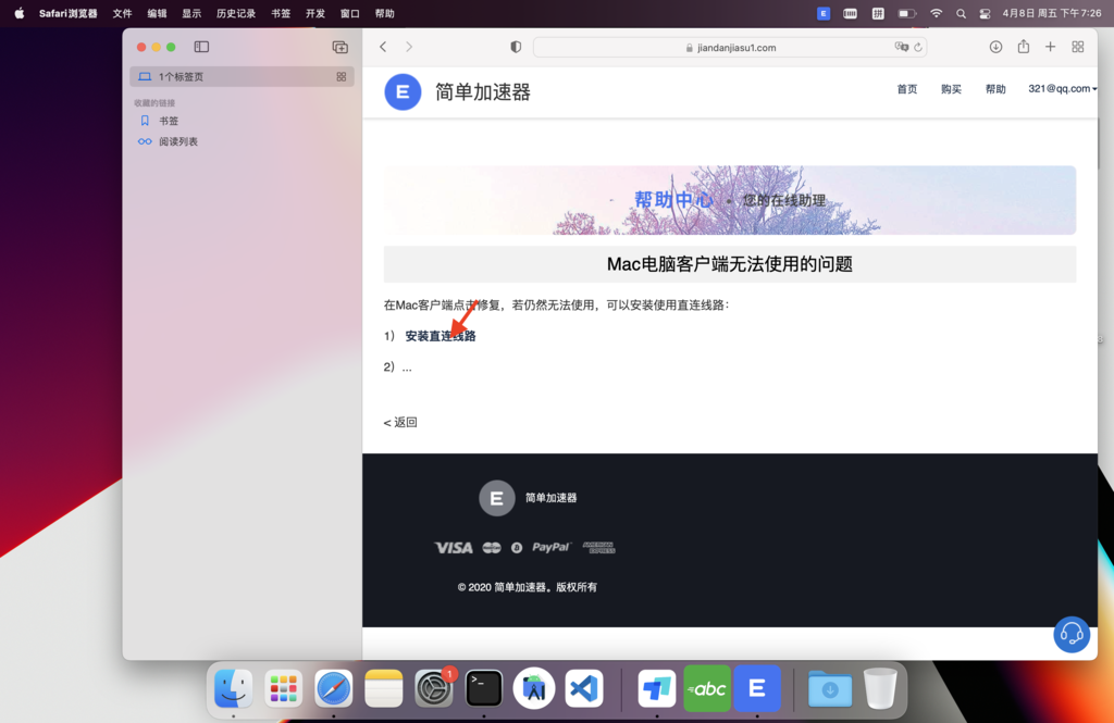 在Mac客户端点击修复,若仍然无法使用,可以安装使用直连线路:
